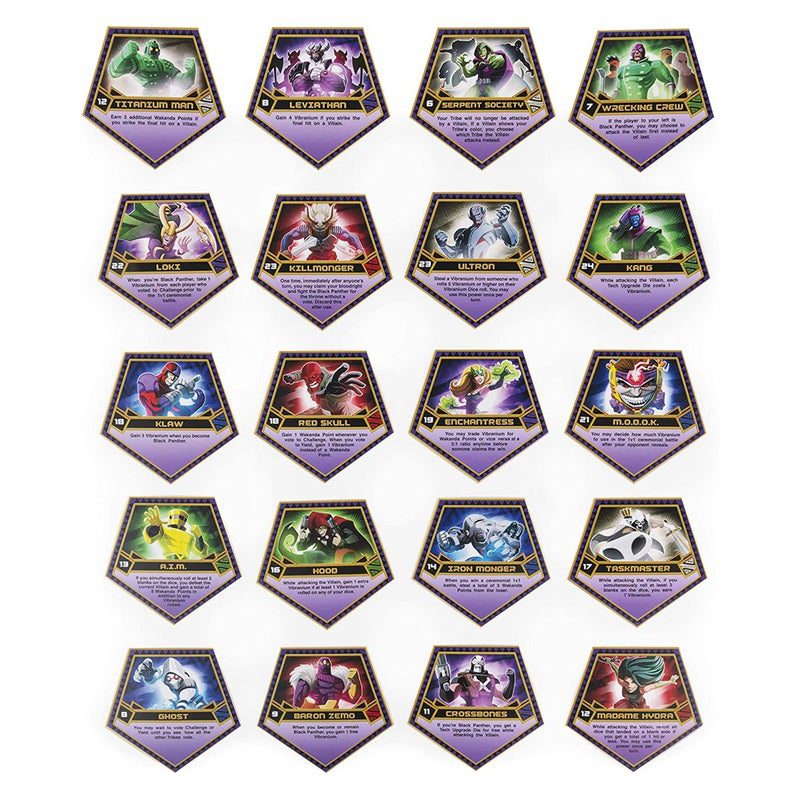 A slew of villains threaten Wakanda! As the five tribes of Wakanda, battle together to keep the country safe. Leading the fight is the King of Wakanda and ultimate warrior, the Black Panther, who alone earns more points than the other four tribes — but you want the throne for yourself, so time your moves carefully, challenge for the throne when the moment is right, and take the mantle of Black Panther! Win the game with the most points and cement your legacy as the Black Panther.