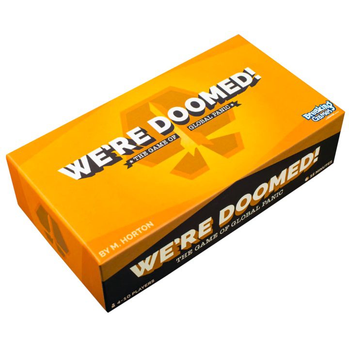 Players are the most powerful leaders in the world working together to build a starship. Time is short! The goal? Build and be on a starship that escapes a dying world — or betray everyone to ensure your own survival. No seats on the starship are guaranteed. We’re Doomed! is a quick, timed, panic-inducing game of international collaboration, retaliation, diplomacy, conspiracy, and blowing each other up for fun!