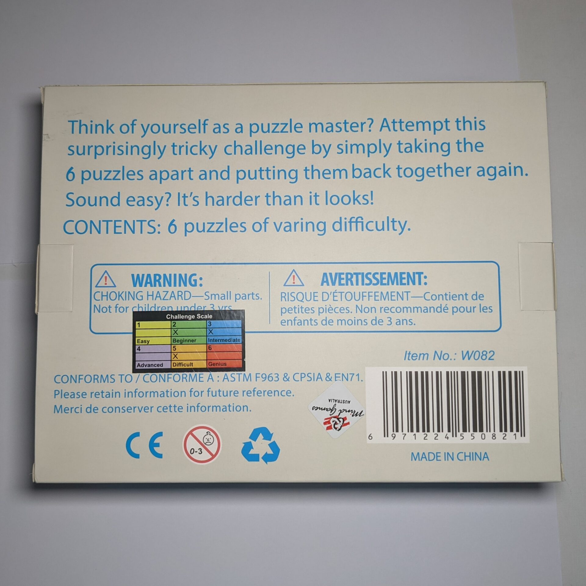 Six dastardly devilish wooden puzzles, all packaged in a lovely gift box. The perfect present for the puzzler in your life.