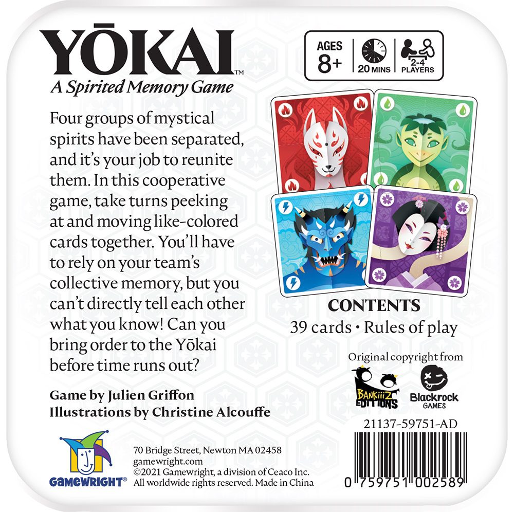 Four groups of mystical spirits have been separated and it’s your job to reunite them. In this cooperative game, take turns peeking at and moving like-colored cards together. You’ll have to rely on your team’s collective memory, but you can’t directly tell each other what you know! Can you bring order to the Yōkai before time runs out?